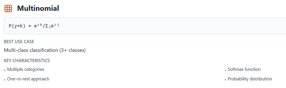 Predicts categories through probabilities